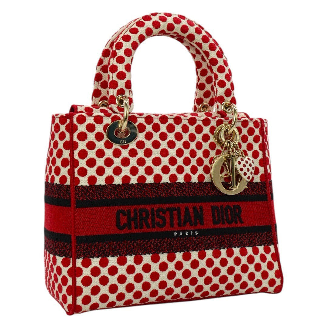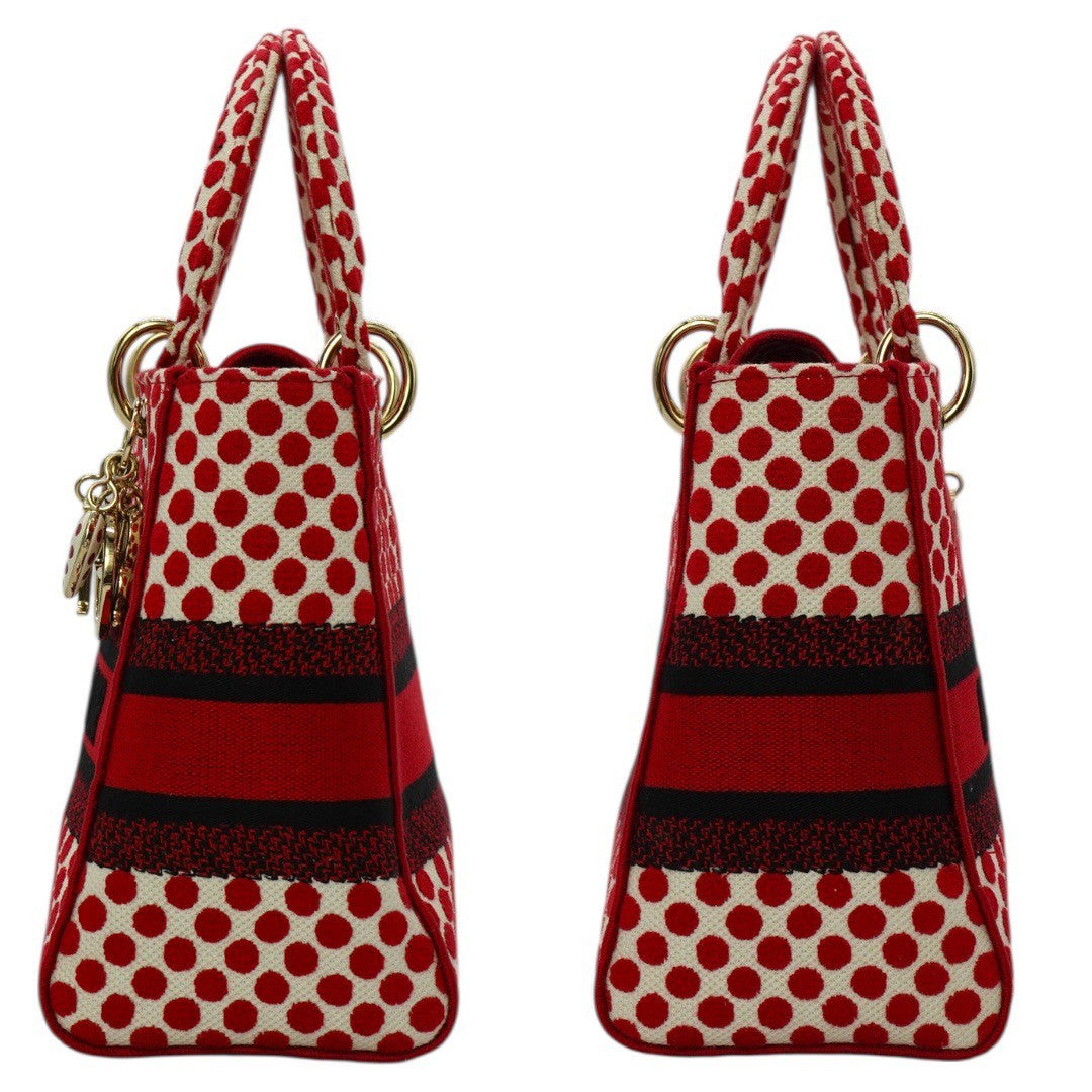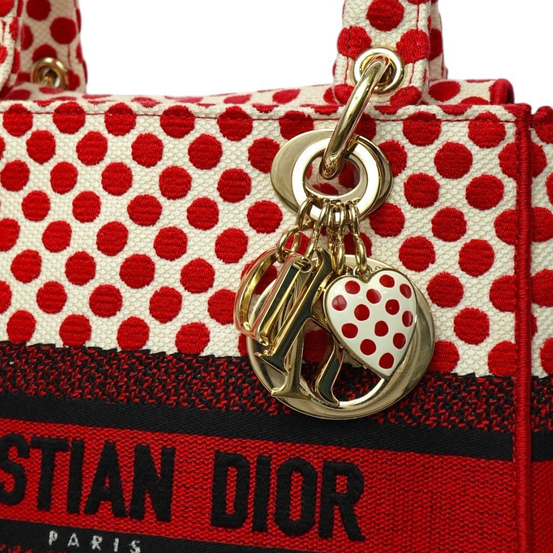 クリスチャンディオール LADY D LITE レディ ディライト ミディアム ハンドバッグ 2WAY 刺繍 ジャガード 水玉