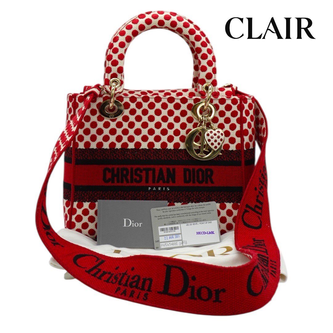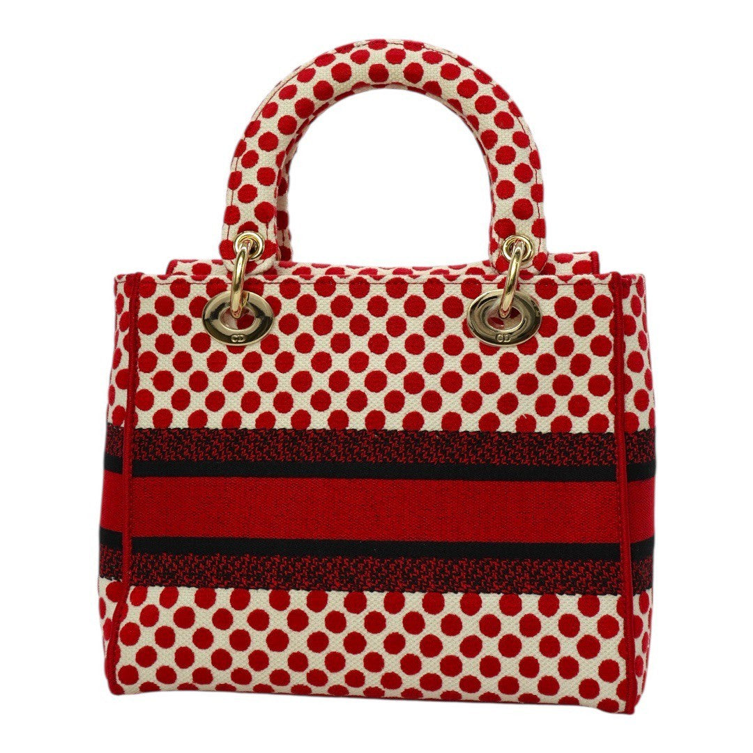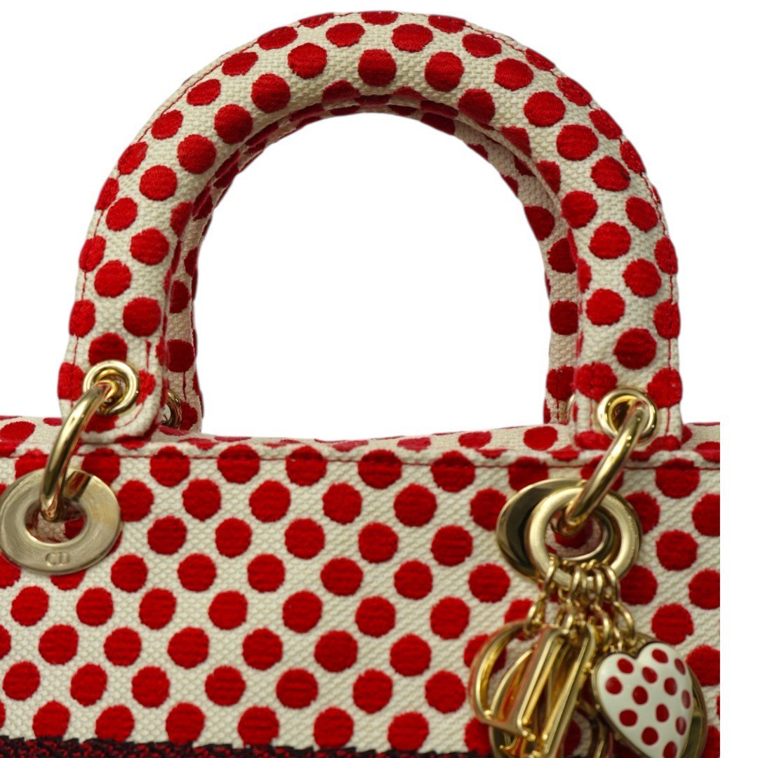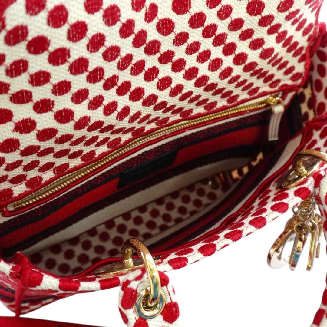 クリスチャンディオール LADY D LITE レディ ディライト ミディアム ハンドバッグ 2WAY 刺繍 ジャガード 水玉