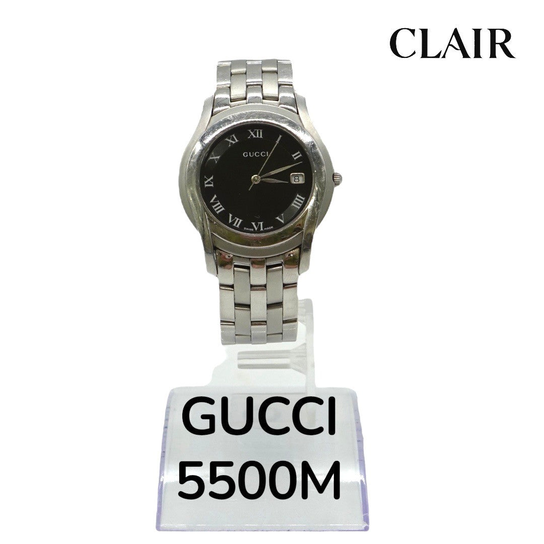 グッチ 腕時計 5500M クォーツ腕時計 SS シルバー文字盤 デイト