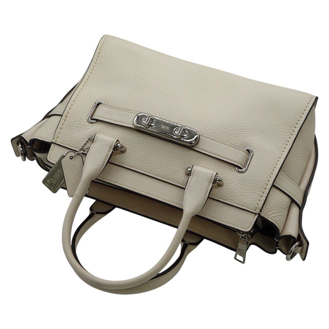 コーチ ショルダーバッグ 2WAYハンドバッグ シグネチャー ターンロック 白 ホワイト レディース