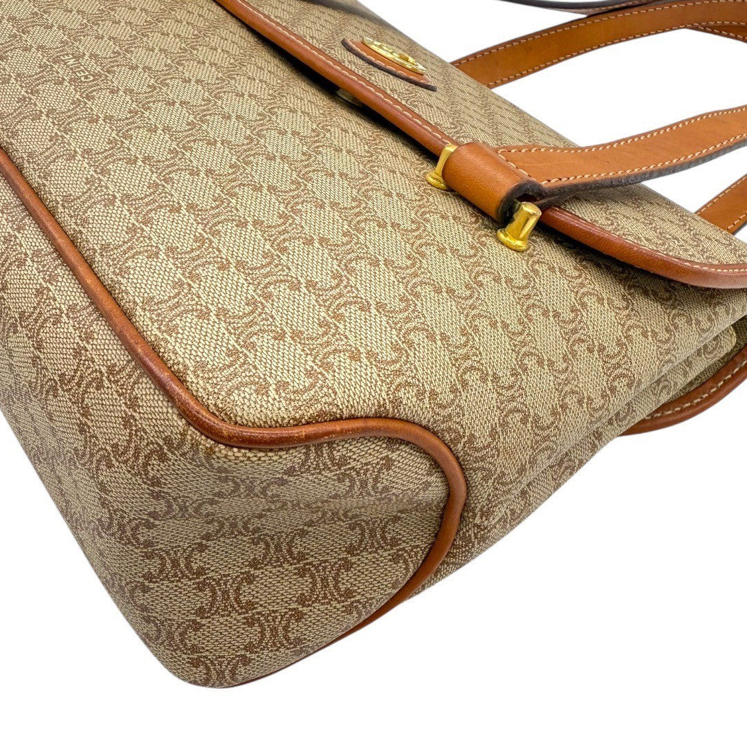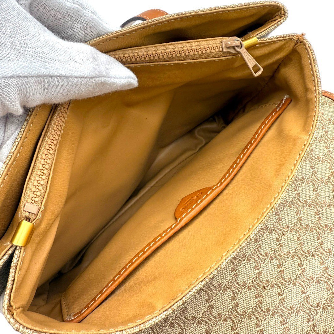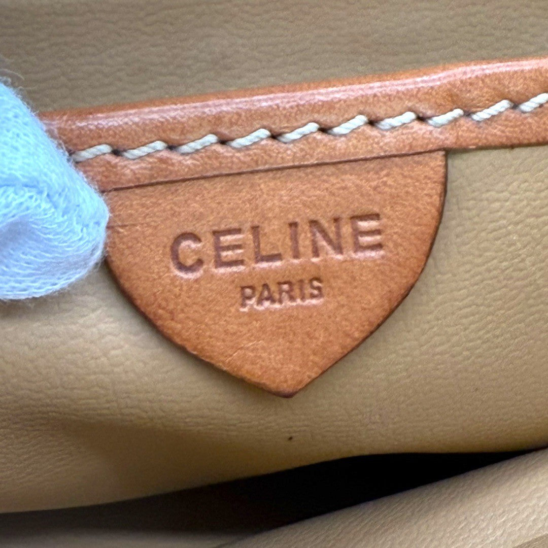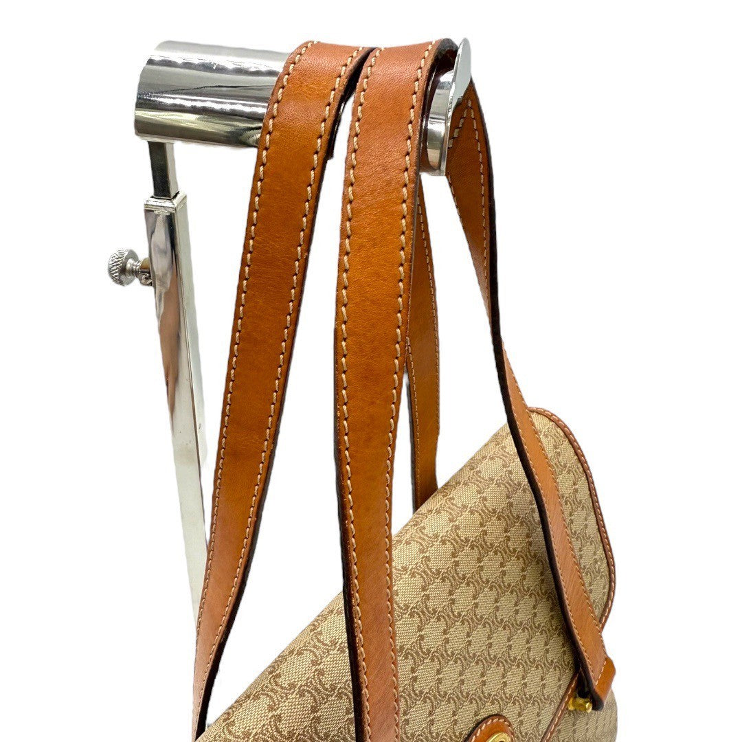 セリーヌ マカダム バック ショルダー PVC×レザー 茶 ゴールド金具 レディース