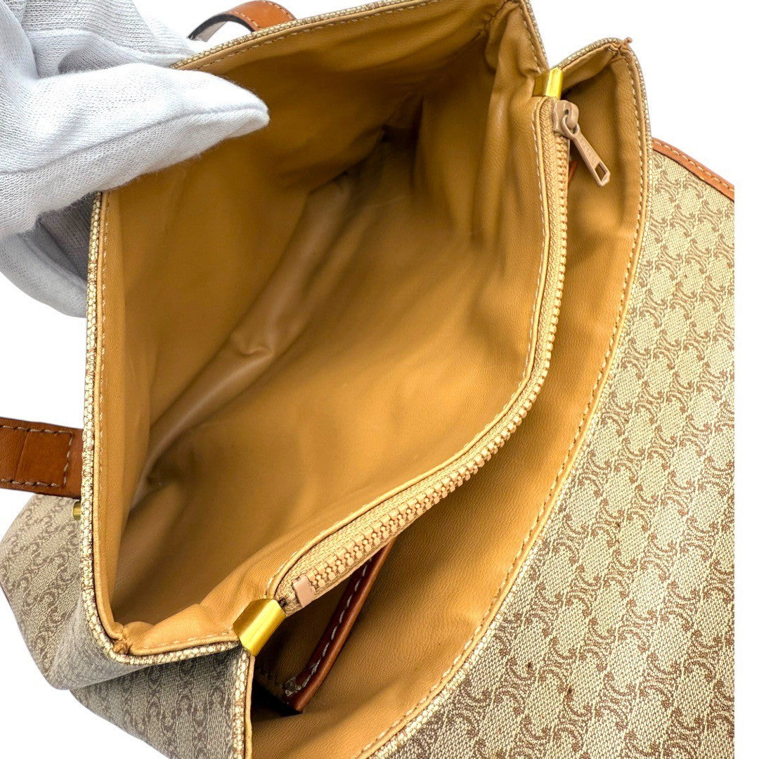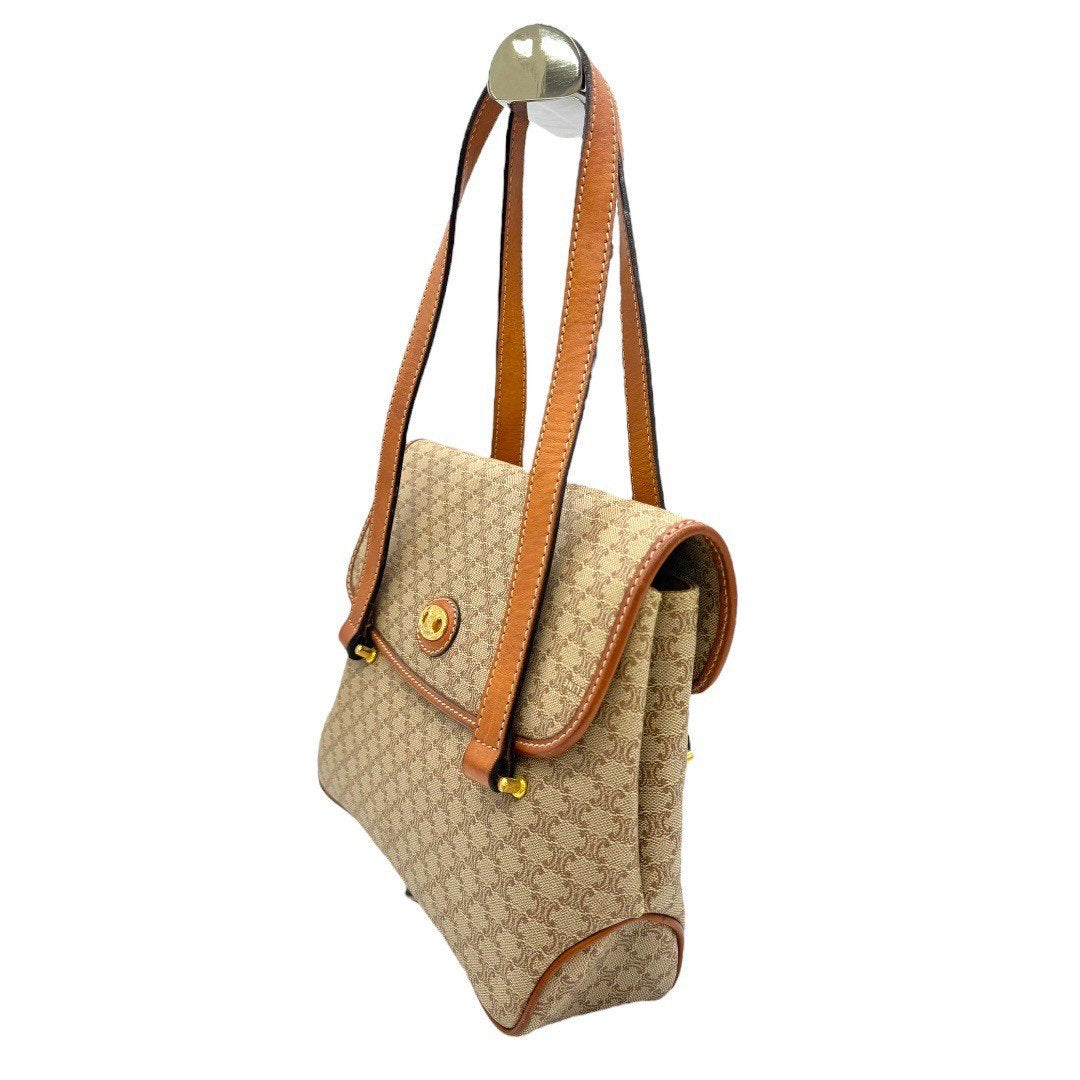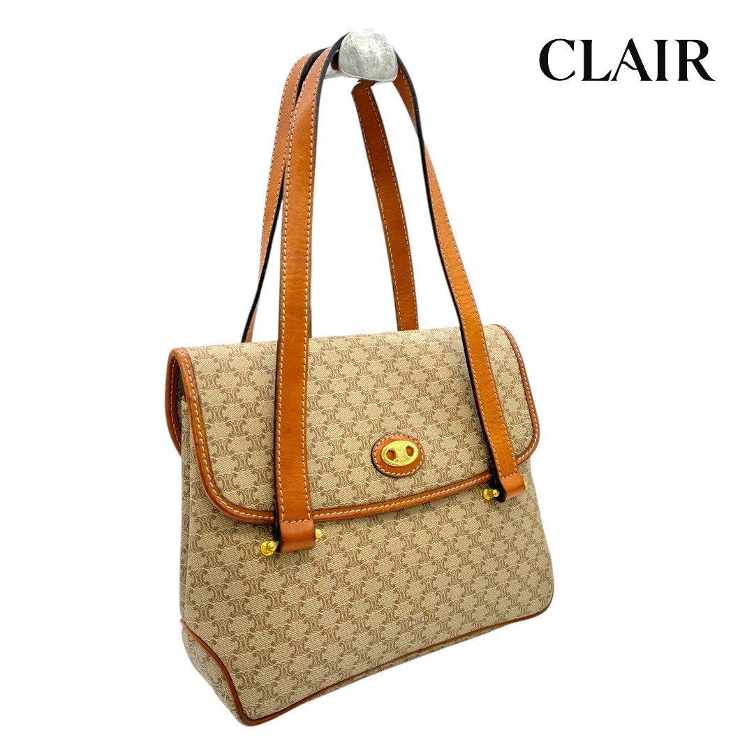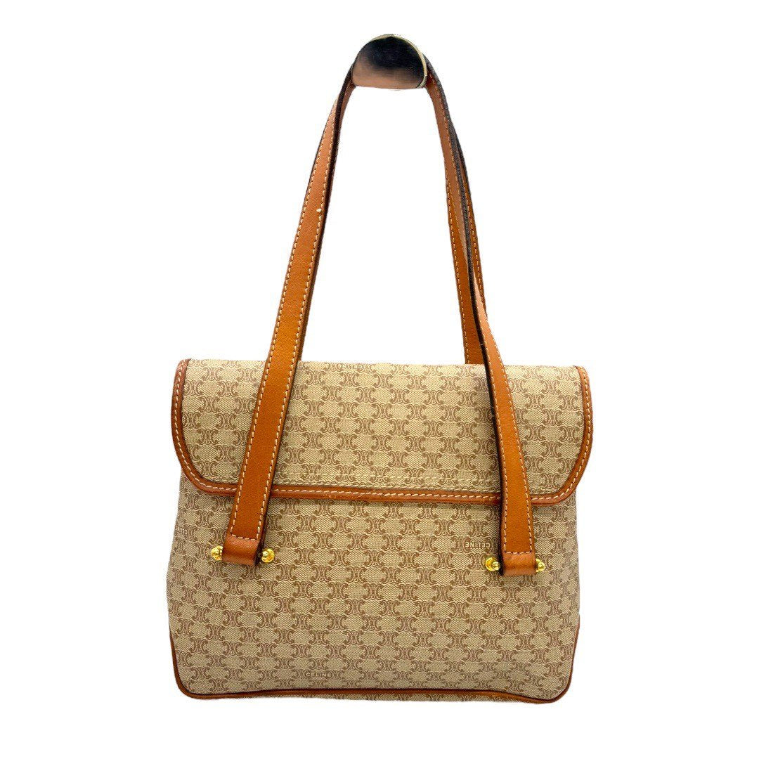 セリーヌ マカダム バック ショルダー PVC×レザー 茶 ゴールド金具 レディース