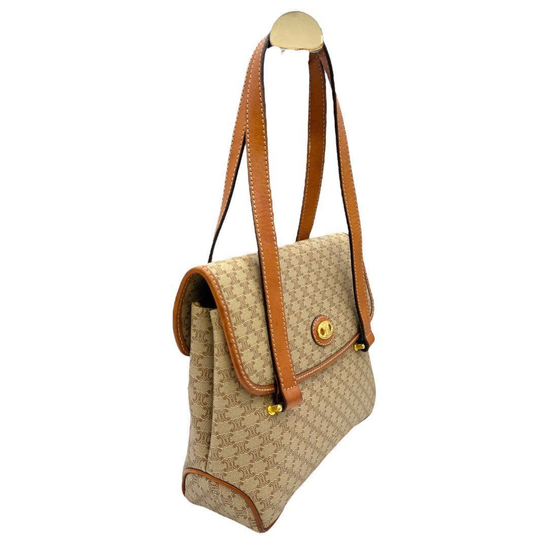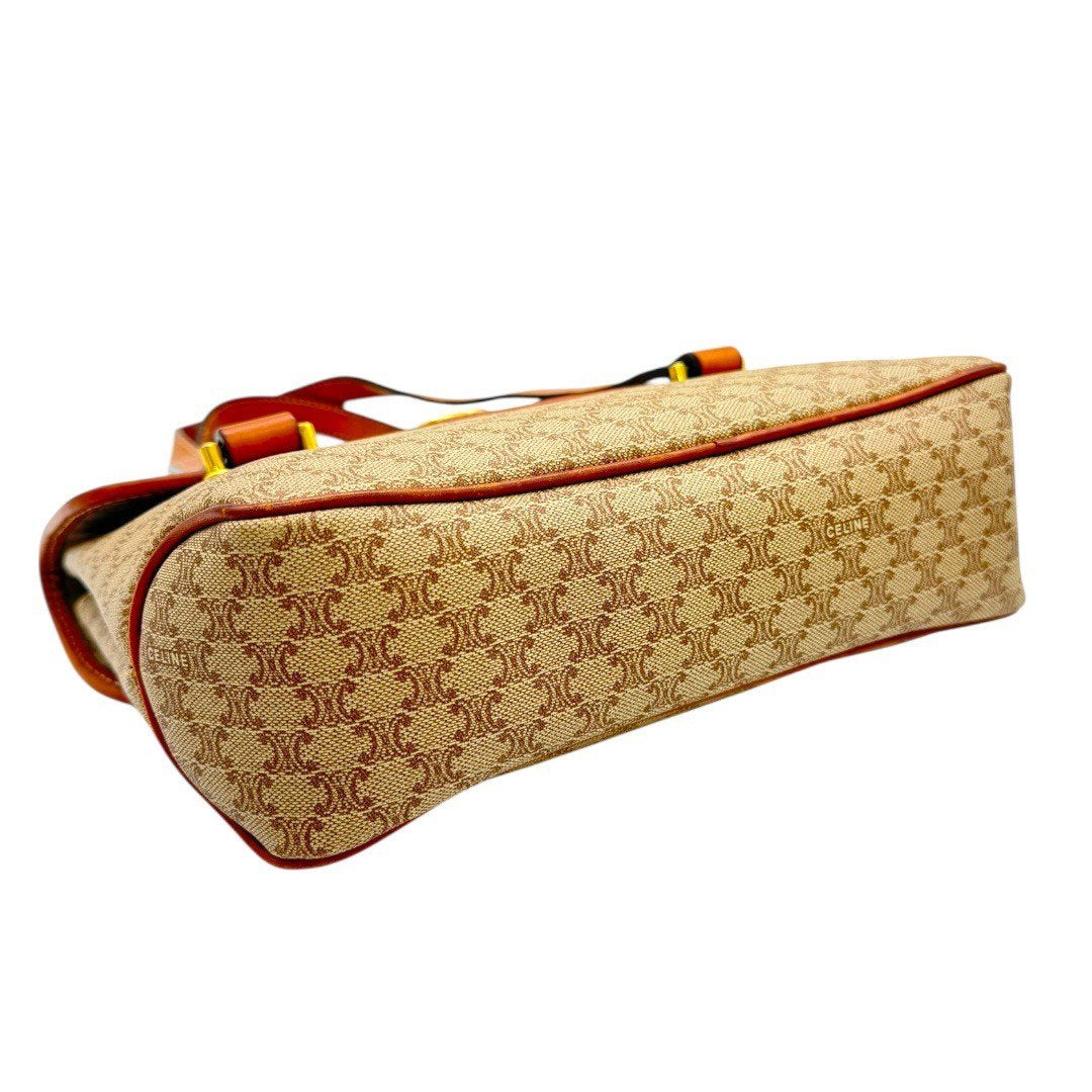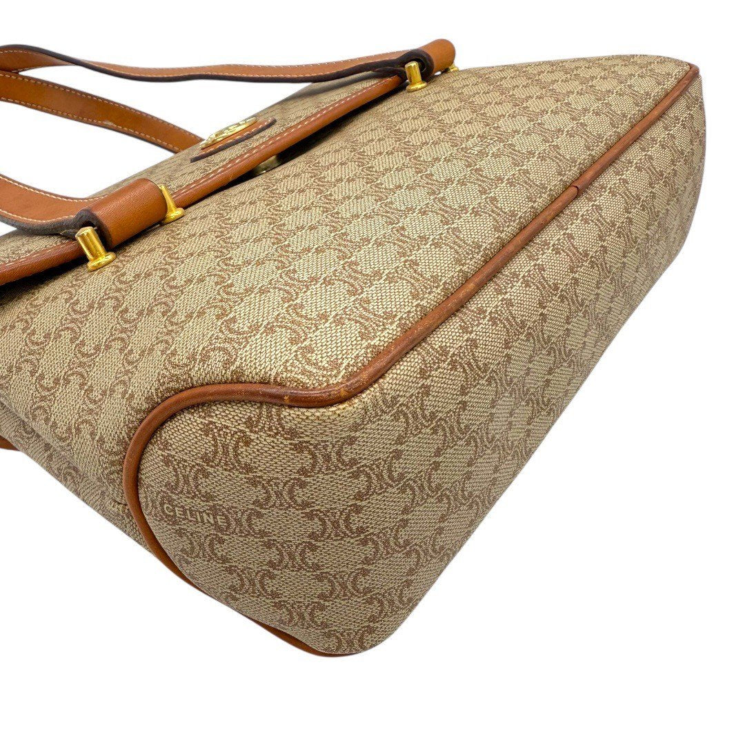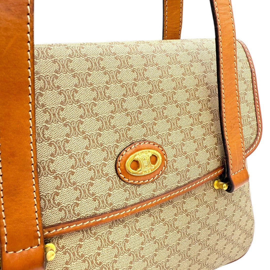 セリーヌ マカダム バック ショルダー PVC×レザー 茶 ゴールド金具 レディース