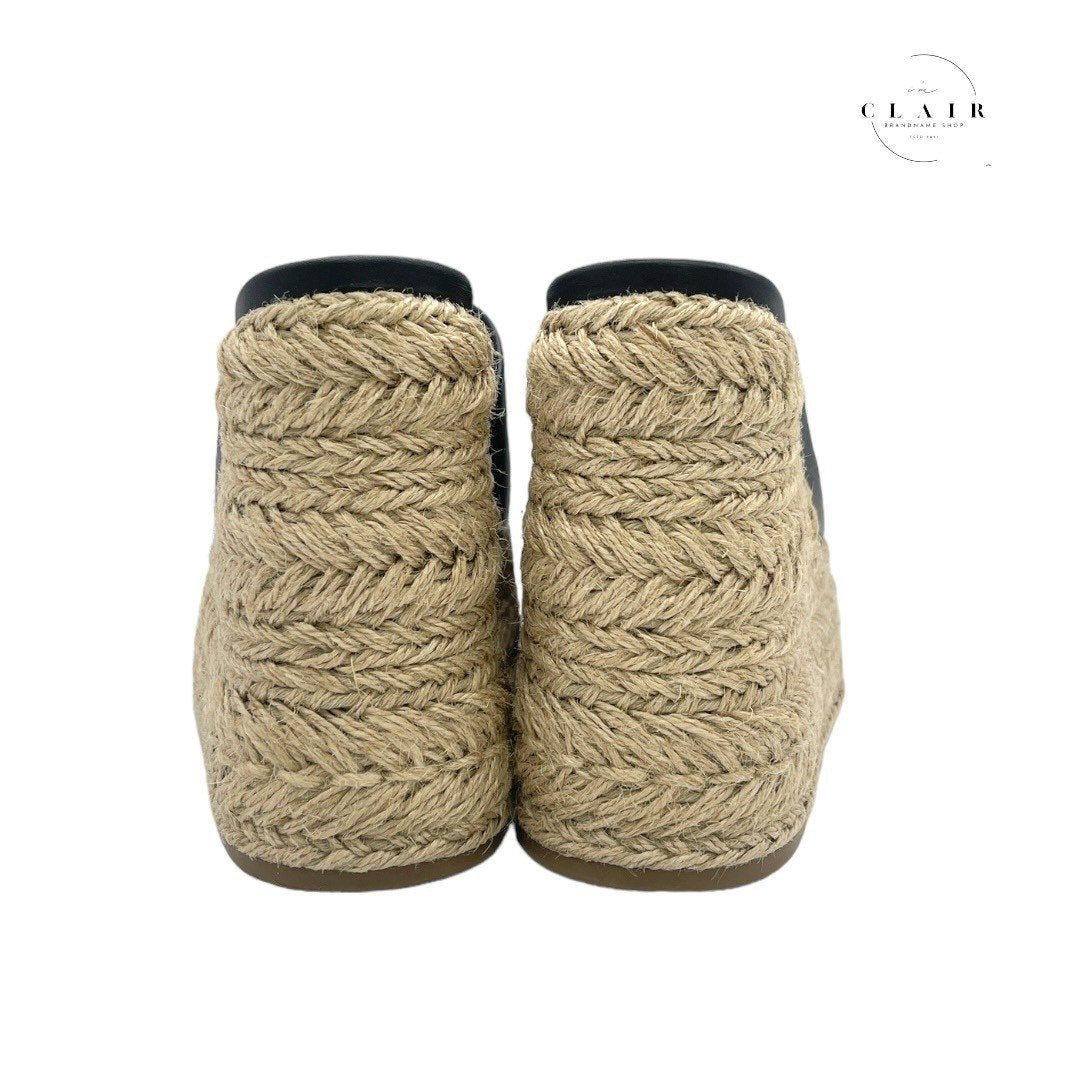 | 仕様 | 天然のロープを編み込んだウェッジヒールをベースに、ブラックのレザーを施したサンダルです。 |